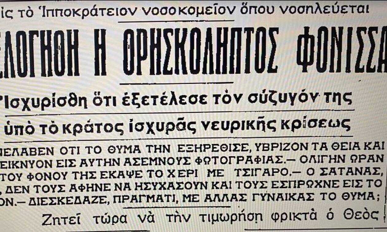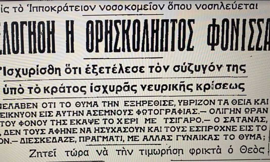 «Σε μια στιγμή τρέλας σκότωσα τον άντρα μου και παρέδωσα την ψυχή μου στον σατανά. Τι κακό ήταν αυτό που με βρήκε μένα, που δεν σηκώνω το χέρι μου για να σκοτώσω το πιο αθώο πλασματάκι του Θεού.