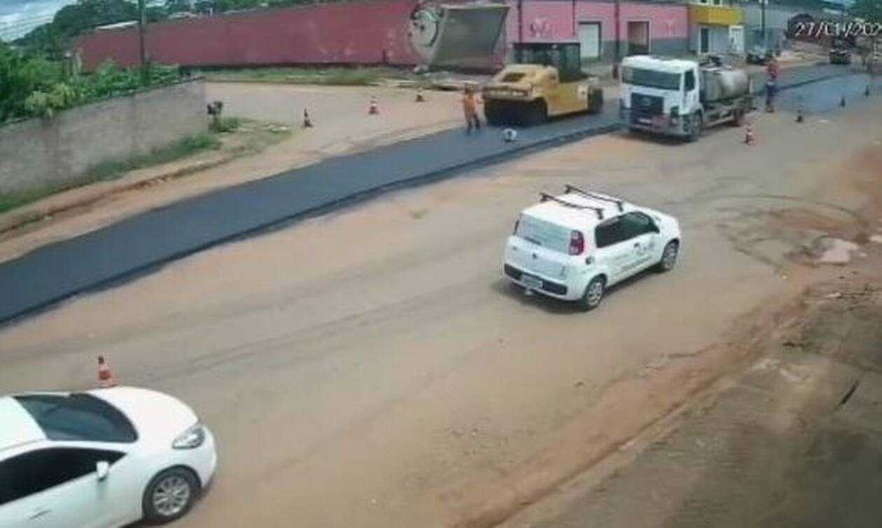 Στο βίντεο φαίνεται ο 35χρονος Edmar de Oliveira Campos να εργάζεται σε δρόμο στην πόλη Πόρτο Βέλο της Βραζιλίας στις 27 Ιανουαρίου και να μην αντιλαμβάνεται έγκαιρα ότι τον πλησιάζει ο οδοστρωτήρας ο οποίος δευτερόλεπτα αργότερα τον πάτησε τραυματίζοντας τον θανάσιμα.