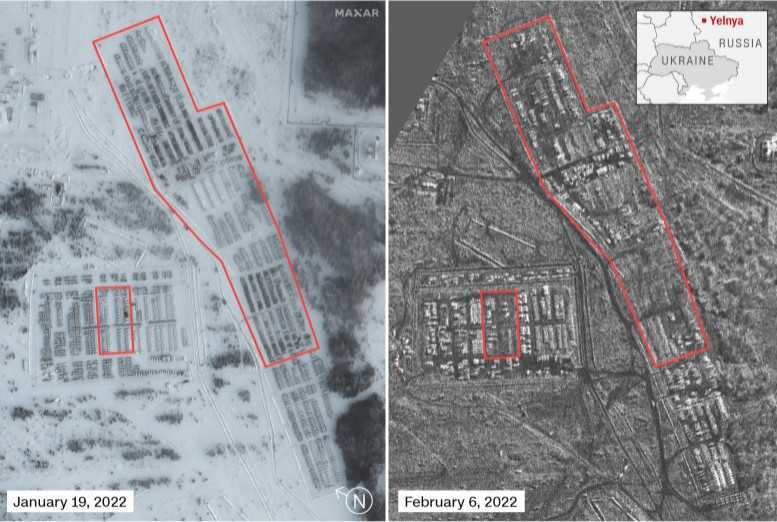 Ο Stephen Wood, ανώτερος διευθυντής της εταιρείας δορυφορικών εικόνων Maxar, είπε στο CNN: «Μου φαίνεται ότι ένας σημαντικός αριθμός οχημάτων (τανκ, αυτοπροωθούμενα πυροβολικά και άλλα οχήματα υποστήριξης) έχουν αναχωρήσει από το βορειοανατολικό πάρκο οχημάτων· επιπλέον τεθωρακισμένα οχήματα αναχώρησαν από τον κεντρικότερο χώρο στάθμευσης οχημάτων».