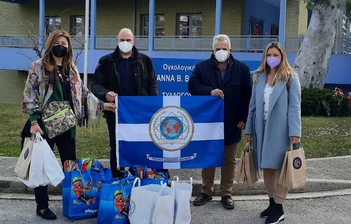Ο Πρόεδρος και τα μέλη της Διεθνούς Ένωσης Αστυνομικών της Τοπικής Διοίκησης Αθηνών Αττικής μαζί με την Θεατρική Παιδαγωγό Κρυσταλλία Κανάκη και με αφορμή τη 15η Φεβρουαρίου “Παγκόσμια ημέρα κατά του παιδικού καρκίνου”, τηρώντας αυστηρά όλα τα απαραίτητα πρωτόκολλα κατά COVID19, επισκεφθήκαν την Ογκολογική Μονάδα Παίδων Μαριάννα Β Βαρδινογιάννη “ΕΛΠΙΔΑ” προσφέροντας για τα παιδιά, μαζί με την αγάπη τους, δώρα, παιχνίδια και παιδικά βιβλία που έχει συγγράψει η Α’ Αντιπρόεδρος Μακρυδάκη Ειρήνη ενώ εξέφρασαν τη βαθιά ευγνωμοσύνη τους στο προσωπικό που στέκεται με φροντίδα και αγάπη στο πλευρό των παιδιών που νοσούν και των οικογενειών τους.