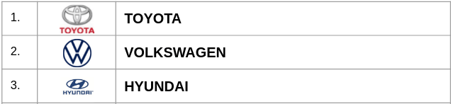 Οι μάρκες που περιλαμβάνει η εν λόγω λίστα, είναι οι εξής: