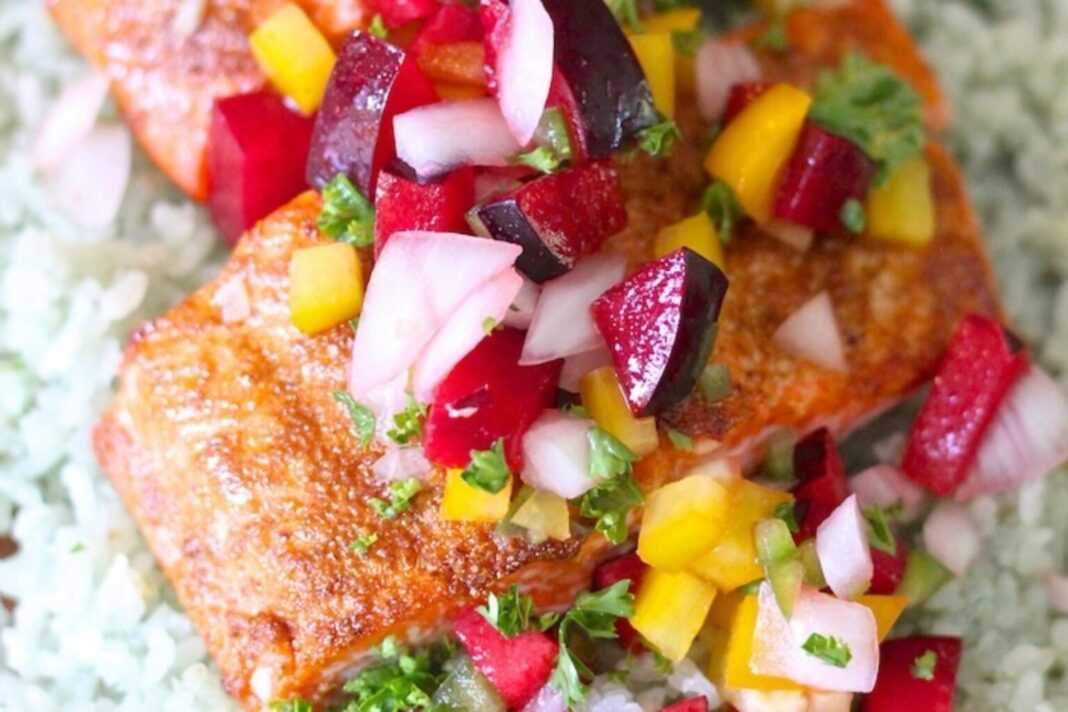 Από το πρωινό γεύμα μέχρι και το γεύμα για δείπνο, από τα σνακ μέχρι και τα κυρίως φαγητά, υπάρχουν άπειρες συνταγές που έχουν την ικανότητα να κάνουν την υγιεινή διατροφή να φαίνεται παιχνιδάκι. Υπάρχουν γεύματα που παρασκευάζονται με μόνο 5 υλικά ή λιγότερα και ένα τέτοιο πιάτο είναι και ο πικάντικος σολομός με σάλτσα από φρέσκο δαμάσκηνο. Η γλυκιά και ταυτόχρονα πικάντικη γεύση του συγκεκριμένου σολομού θα σας τρελάνει χρησιμοποιώντας τα πιο αγνά και απλά υλικά. Από την άλλη, η σάλτσα φρέσκου δαμάσκηνου είναι πραγματικά η κατάλληλη προσθήκη που συμπληρώνει πραγματικά το καπνιστό αυτό ψητό ψάρι.