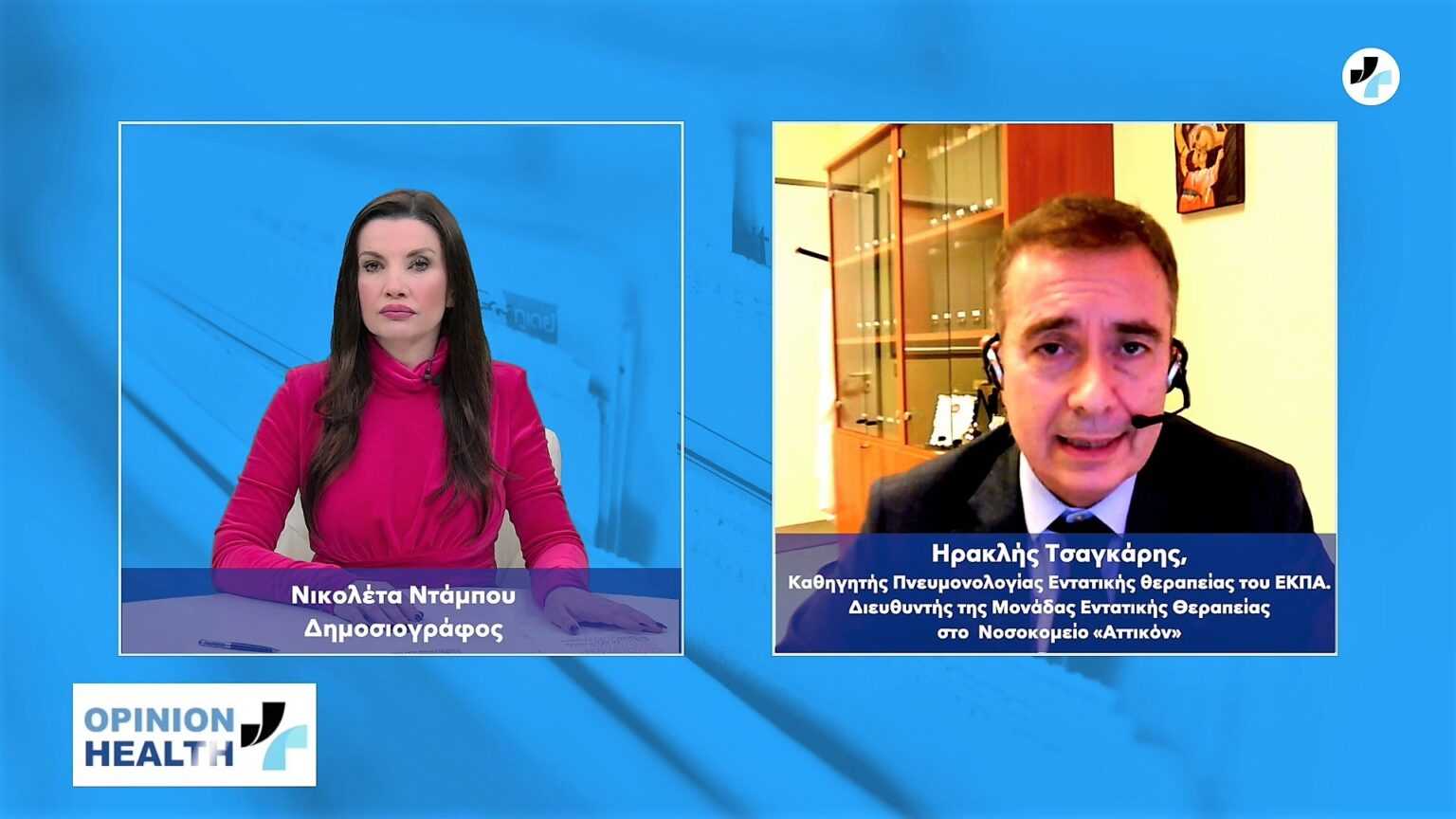 Για τον ρόλο των μονάδων εντατικής θεραπείας στην ‘’μάχη’’ κατά της πανδημίας του κορωνοϊού αλλά και για τη θνητότητα, καθώς και για την συμβολή των νέων τεχνολογιών ώστε να σωθούν οι ασθενείς με βαριά αναπνευστική ανεπάρκεια , που κινδύνευσε η ζωή τους λόγω του COVID , μίλησε στην εκπομπή Opinion Health με την Νικολέτα Ντάμπου ο κ. Ηρακλής Τσαγκάρης, ο οποίος είναι Καθηγητής Πνευμονολογίας Εντατικής Θεραπείας του ΕΚΠΑ αλλά και Διευθυντής στη Μονάδα Εντατικής Θεραπείας στο Νοσοκομείο «Αττικόν».