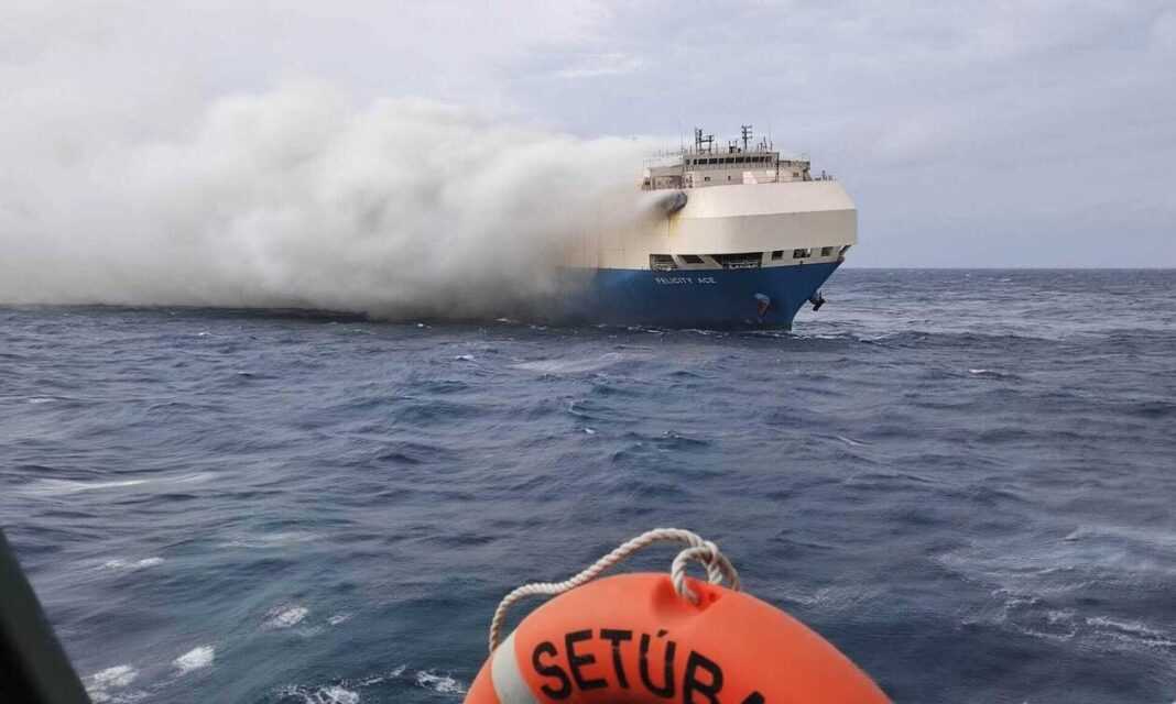 Το φορτηγό πλοίο που μετέφερε περισσότερα από 4.000 αυτοκίνητα τυλίχθηκε στις φλόγες κοντά στις Αζόρες το απόγευμα της Τετάρτης (16/2). Τα 22 μέλη του πληρώματος του σκάφους εκκενώθηκαν, αλλά η φωτιά συνέχισε να καίει για αρκετές ημέρες, τροφοδοτούμενη από τις μπαταρίες ιόντων λιθίου στα ηλεκτρικά οχήματα που επέβαιναν στο πλοίο.