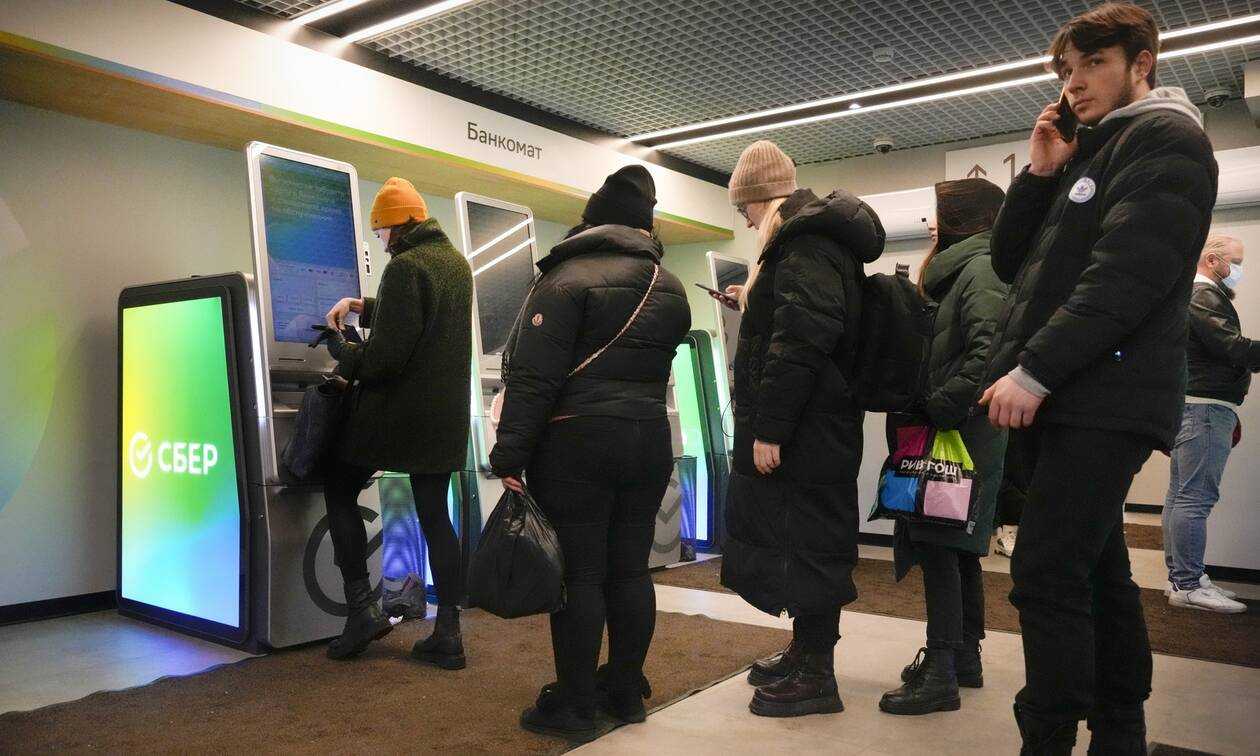 Δεν ισχύει, όμως, το ίδιο και για τους Ρώσους πολίτες. Ενδεικτικές είναι οι εικόνες που κυκλοφορούν στα social media, στις οποίες Ρώσοι σχηματίζουν «ουρά» έξω από τράπεζες και ΑΤΜ, από τα ξημερώματα, θέλοντας έτσι να πάρουν τα χρήματά τους και να τα έχουν στη διάθεσή τους για παν ενδεχόμενο…
