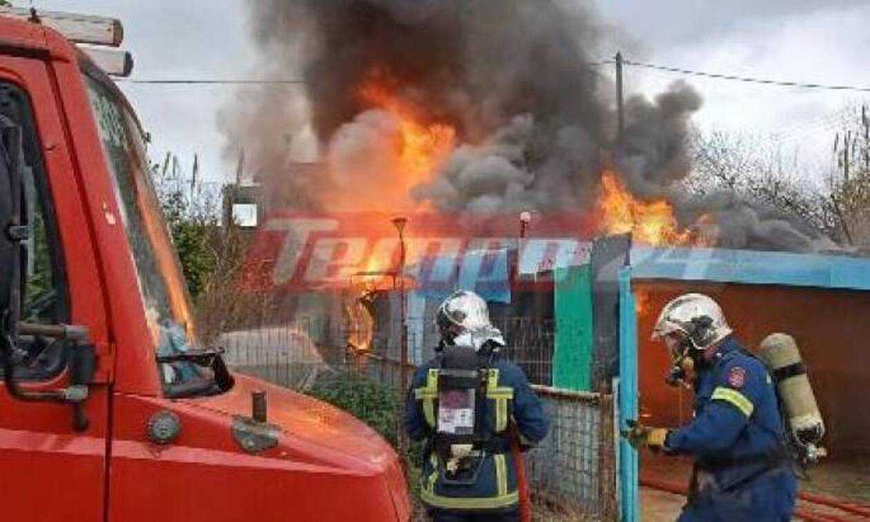Η φωτιά ξέσπασε σε παράπηγμα που έμενε ένας άνδρας. Κατά τις ίδιες πληροφορίες, ο άνδρας δεν διατρέχει κίνδυνο.