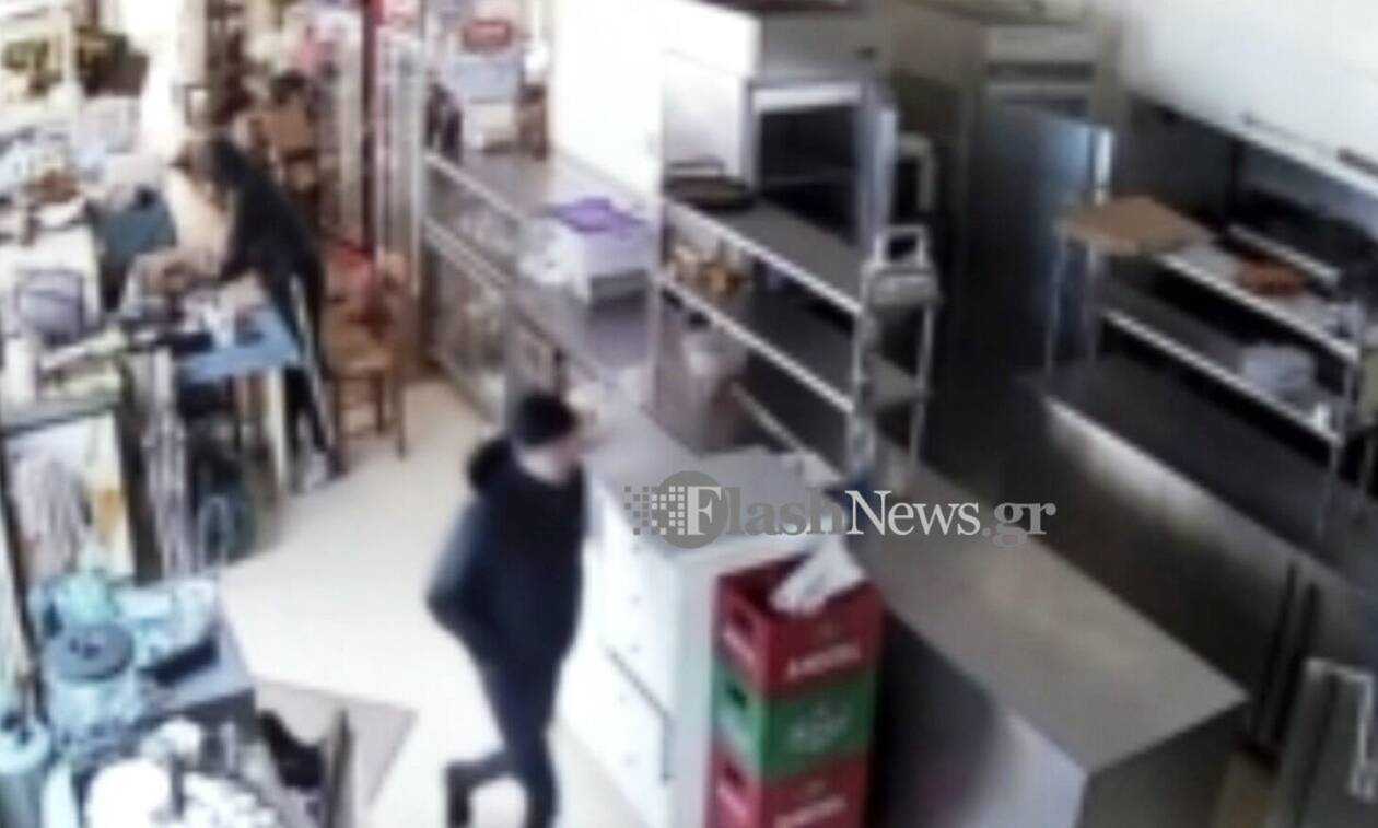 Παρά το γεγονός ότι η ταβέρνα ήταν κλειστή, η κάμερα ήταν σε λειτουργία. Το ζευγάρι μπήκε στο κατάστημα από ένα παράθυρο φορώντας κουκούλες και μάσκες και άρπαξε από το ταμείο περίπου 150 ευρώ, έναν ηλεκτρονικό υπολογιστή με πληκτρολόγιο, ποντίκι, οθόνη και ένα κινητό τηλέφωνο.