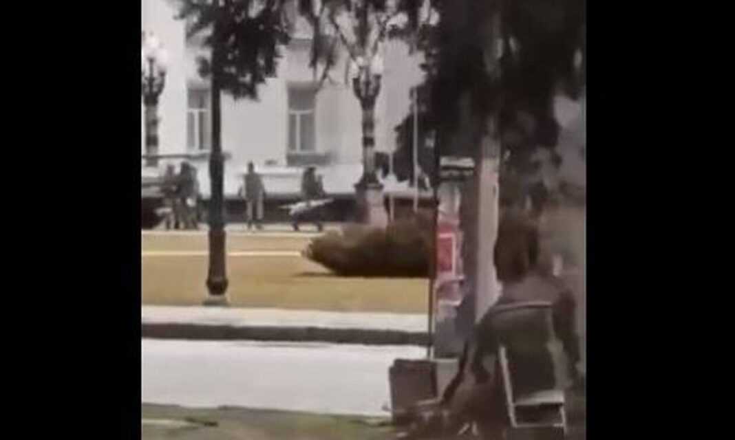 Ρώσοι στρατιώτες επιχείρησαν να την κατεβάσουν από κτήριο, αλλά οι Ουκρανοί πολίτες περικύκλωσαν το τανκ τους και κατάφεραν να την πάρουν πίσω.