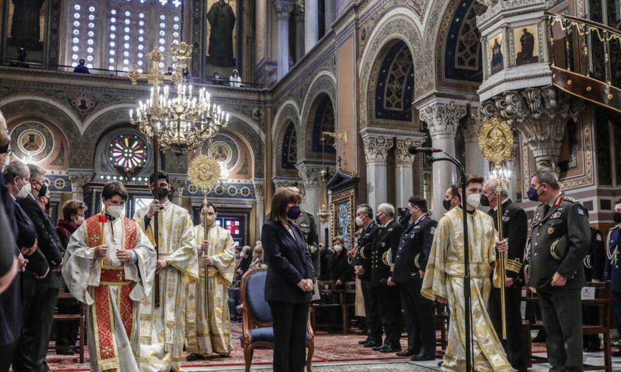 Στον Καθεδρικό Ναό της Αθήνας τελέστηκε η καθιερωμένη Συνοδική Θεία Λειτουργία με την τήρηση όλων των προβλεπόμενων υγειονομικών διατάξεων, προεξάρχοντος του Μακαριωτάτου Αρχιεπισκόπου Αθηνών και πάσης Ελλάδος κ.κ. Ιερωνύμου, παρουσία της Προέδρου της Ελληνικής Δημοκρατίας κ. Κατερίνας Σακελλαροπούλου, εκπροσώπων των Πολιτικών, Δικαστικών και Στρατιωτικών Αρχών, καθώς και των Πρέσβεων των Ορθοδόξων Κρατών στην Αθήνα.
