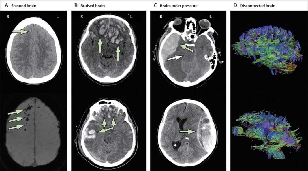 Οι Times συγκρίνουν τις σοβαρές εγκεφαλικές βλάβες με ισχυρούς σεισμούς, αλλά αντί να γκρεμίζονται γέφυρες και κτίρια, τα οστά μας σπάνε καθώς αργότερα εκρήγνυνται αιμορραγίες με ακατέργαστα επώδυνα τραύματα στο πρόσωπο.
