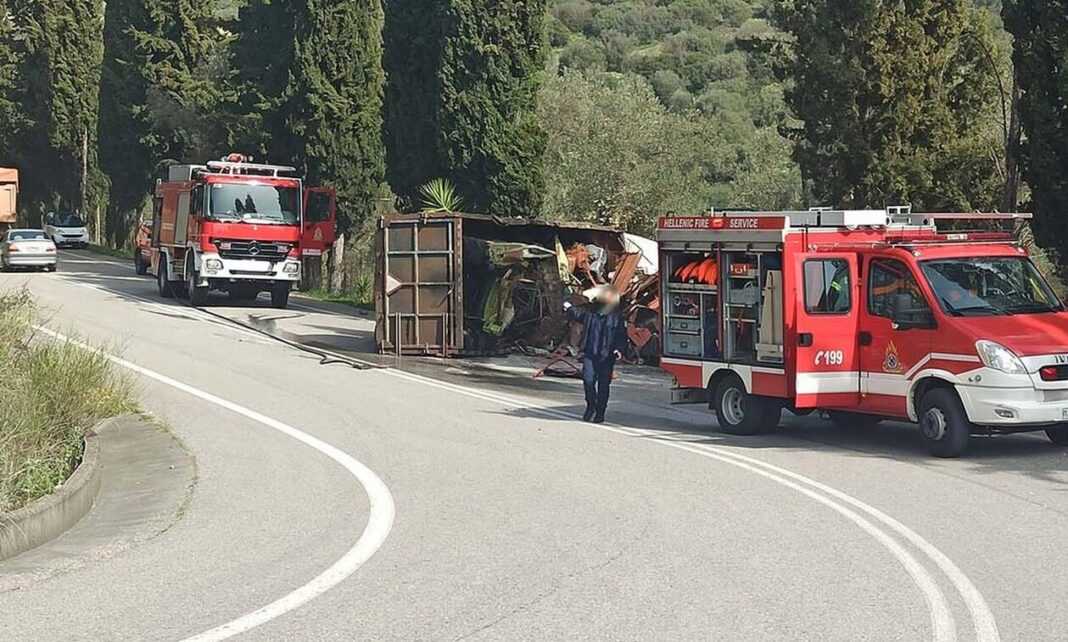 Σύμφωνα με το karvasaras.gr, το δυστύχημα έγινε λίγο πριν τις 11.00 το πρωί της Τετάρτης όταν υπό συνθήκες που ερευνά η Αστυνομία, ο οδηγός έχασε τον έλεγχο του φορτηγού που ήταν φορτωμένο με σίδερα και αυτό ανετράπη μετά από στροφή.