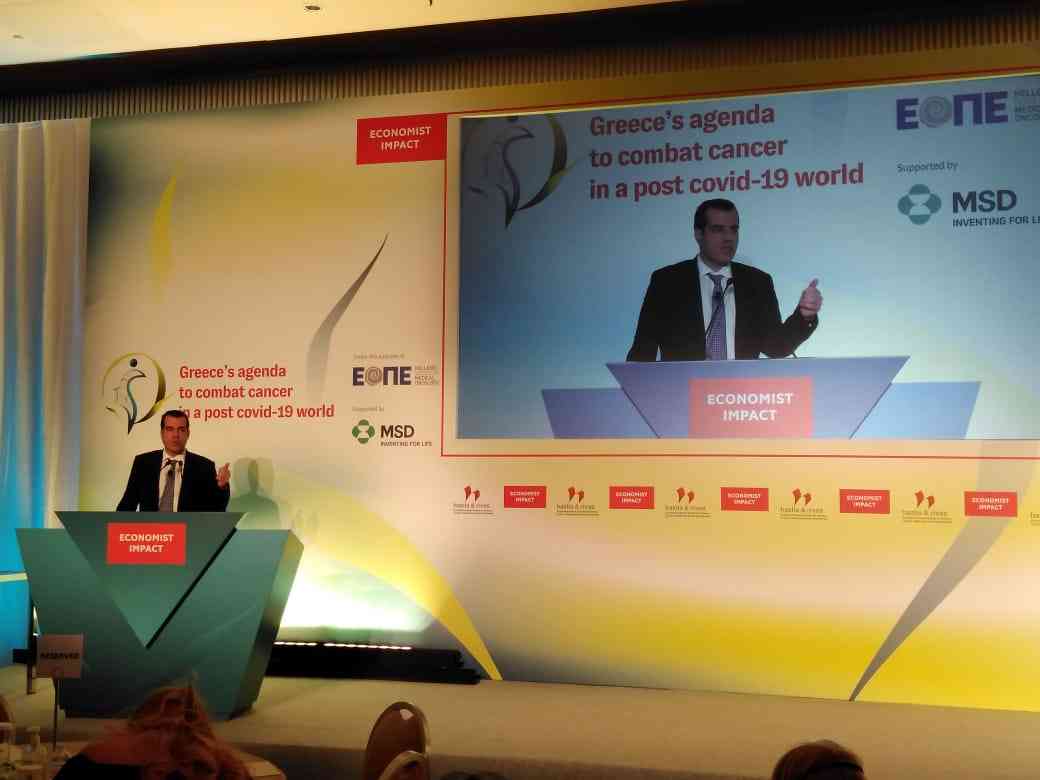Στις τρεις προτεραιότητες του υπουργείου Υγείας για το θέμα του καρκίνου αναφέρθηκε ο υπουργός Υγείας Θάνος Πλεύρης στην ομιλία του στο συνέδριο του Economist Impact, στην ενότητα «Η ατζέντα της Ελλάδας για την καταπολέμηση του καρκίνου στην μετά Covid-19 εποχή». Σύμφωνα με τα όσα είπε αυτές είναι η πρόληψη, η θεραπεία αλλά και οι κλινικές μελέτες.
