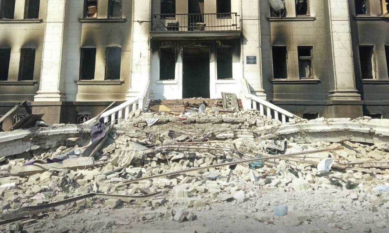 Ο δήμος της Μαριούπολης δημοσιοποίησε από τη δική του πλευρά στην πλατφόρμα Telegram φωτογραφία που δείχνει το κεντρικό τμήμα του θεάτρου εντελώς κατεστραμμένο, με μια λευκή στήλη καπνού να υψώνεται από τα συντρίμμια.