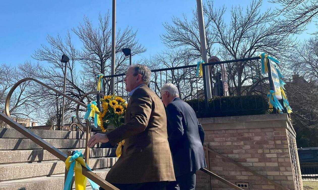 Οι δύο πρώην πλανητάρχες κατέθεσαν ηλιοτρόπια – το εθνικό λουλούδι της Ουκρανίας και σύμβολο της αντίσταση – στην Καθολική Εκκλησία των Αγίων Βολοδιμίρ και Όλα στο Σικάγο.