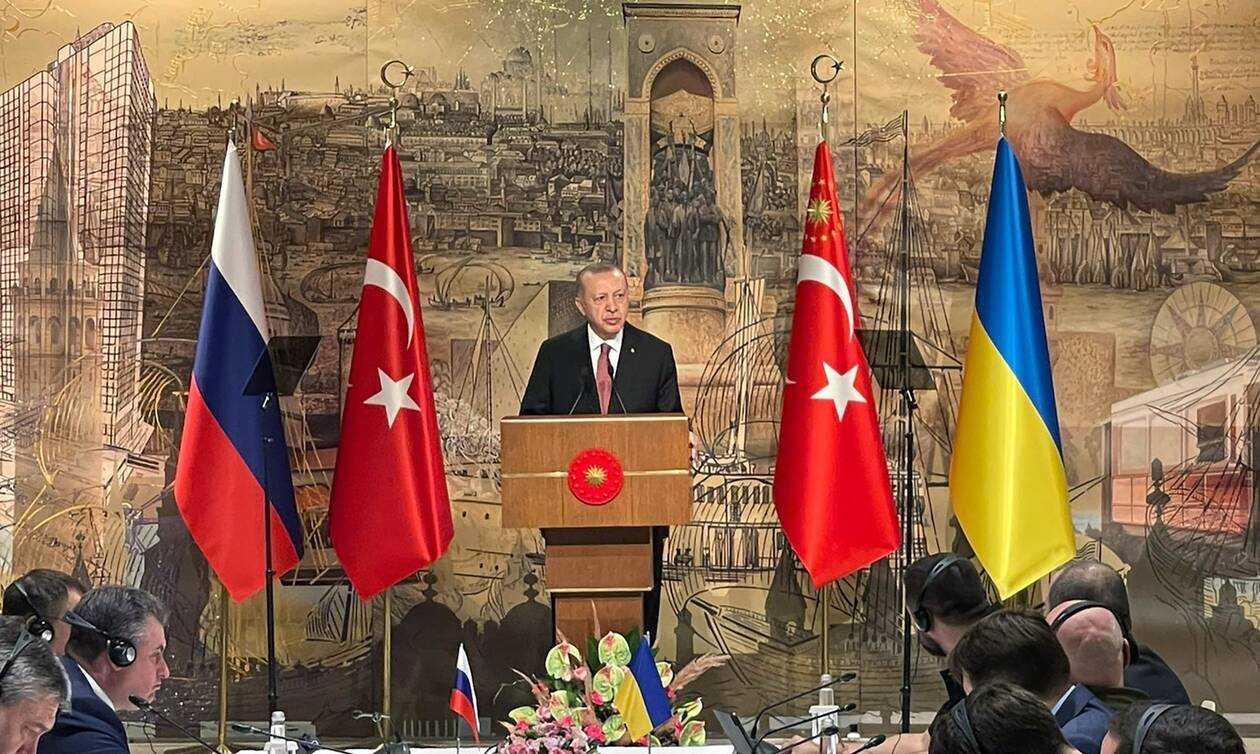 Μιλώντας σε δημοσιογράφους κατά τη διάρκεια επίσημης επίσκεψης στο Ουζμπεκιστάν, ο Ερντογάν είπε ότι πιστεύει πως οι συναντήσεις της ρωσικής και της ουκρανικής αντιπροσωπείας στην Κωνσταντινούπολη έδωσαν ουσιαστική ώθηση στην ειρηνευτική διαδικασία.