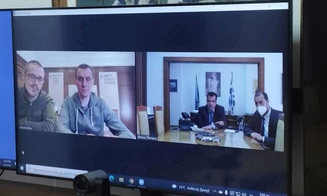 Ο υπουργός Υγείας Θάνος Πλεύρης πραγματοποίησε εχθές με τη συμμετοχή του Διοικητή των Νοσοκομείων Παίδων «Αγ. Σοφία» και «Π& Α. Κυριακού» Εμμανουήλ Παπασάββα, τηλεδιάσκεψη με τον Υπουργό Υγείας της Ουκρανίας Βίκτορ Λιάσκο.