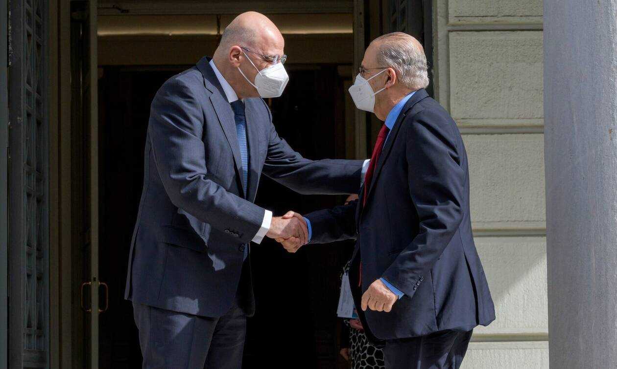 O Νίκος Δένδιας υποδέχθηκε τον Κύπριο υπουργό Εξωτερικών λίγο πριν την τριμερή Ελλάδας-Κύπρου-Ισραήλ