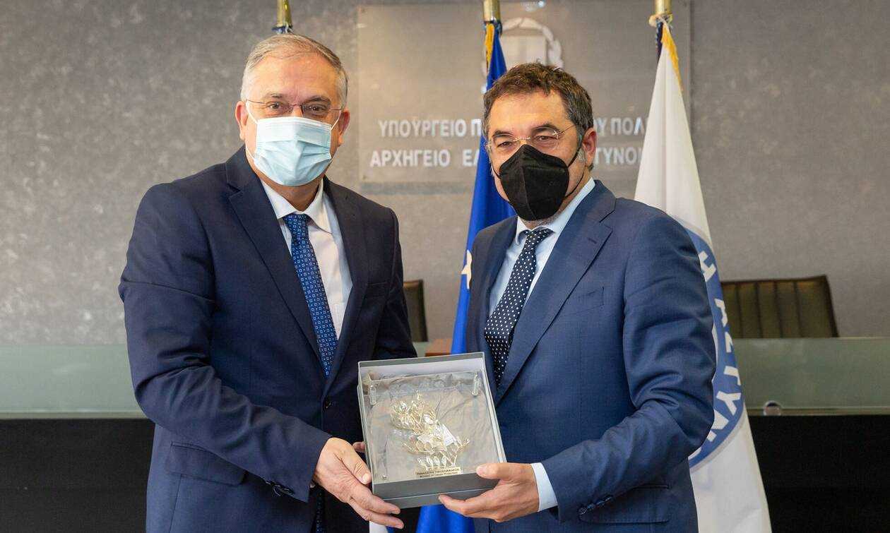 Διμερής συνάντηση συνεργασίας πραγματοποιήθηκε σήμερα μεταξύ των Υπουργών Προστασίας του Πολίτη Τάκη Θεοδωρικάκου και του Υπουργού Εσωτερικών της Αλβανίας Bledi Cuci. Στη σύσκεψη συμμετείχαν επίσης, οι Υφυπουργοί Ελλάδας και Αλβανίας Ελευθέριος Οικονόμου και Andi Mahilla, η πρέσβης της Αλβανίας στην Αθήνα Luela Hajdaraga και εκπρόσωποι της Αστυνομίας των δύο χωρών.
