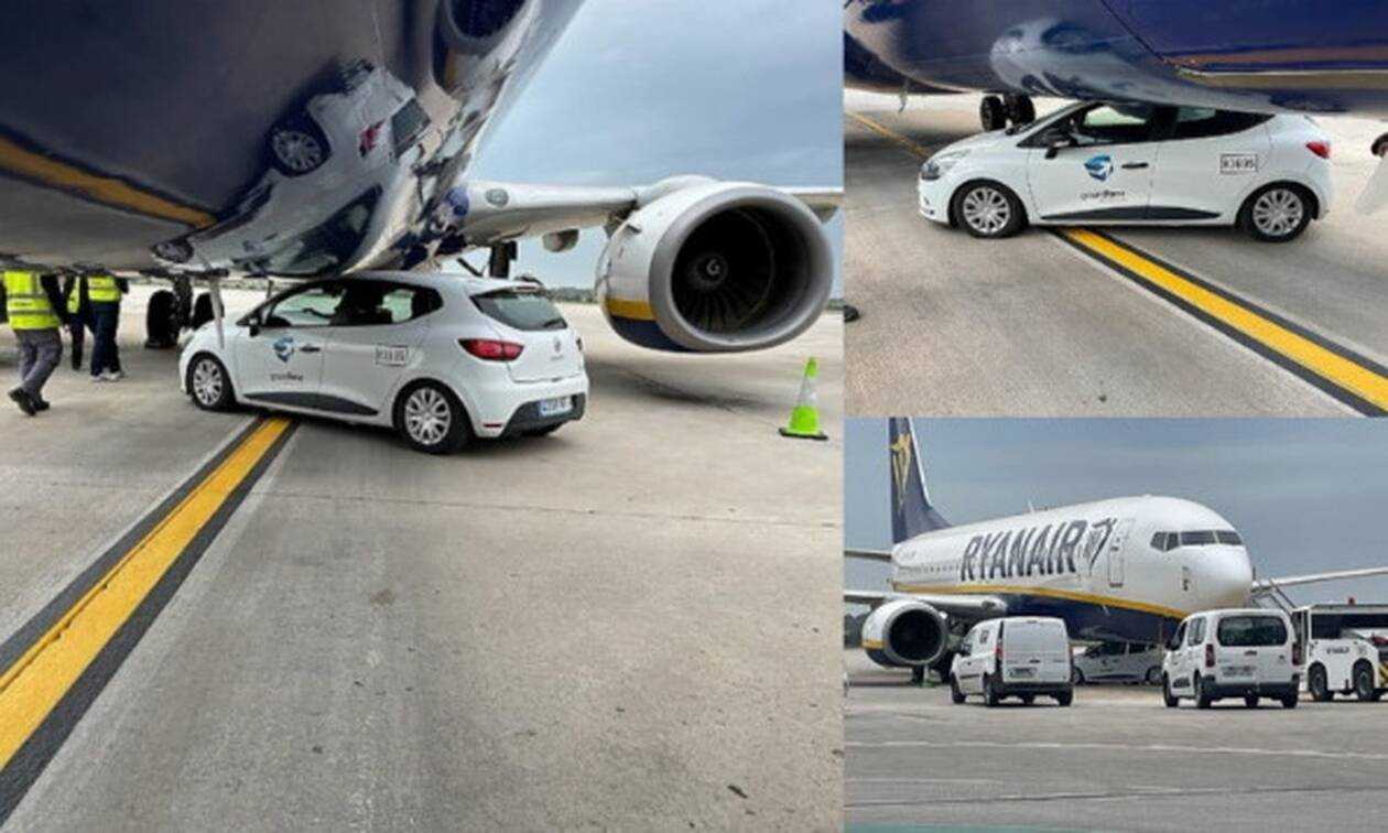 Το περίεργο αυτό συμβάν καταγράφηκε πριν από μερικές μέρες στο αεροδρόμιο του Αλικάντε στην Ισπανία. Και από την στιγμή που ένας από τους υπαλλήλους τράβηξε φωτογραφίες και τις ανέβασε στα μέσα κοινωνικής δικτύωσης, όπως καταλαβαίνετε οι αρχές του αεροδρομίου δεν μπορούσαν σε καμία περίπτωση να αποσιωπήσουν αυτό το τραγελαφικό ατύχημα που έγινε viral. Ευτυχώς κανείς δεν τραυματίστηκε από την σύγκρουση του λευκού Clio με ένα Boeing 747 του στόλου της Ryanair.