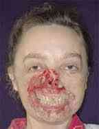 Το τραυματικό έλλειμμα του κατώτερου μέρους του προσώπου της Isabelle Dinoire, μετά την επίθεση που δέχθηκε από τον σκύλο της.