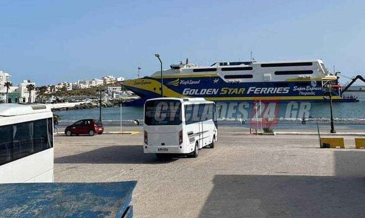 Στο πλοίο της Golden Star Ferries δημιουργήθηκε πρόβλημα κατά τους χειρισμούς (μπλόκαραν τα χειριστήρια και δεν έπιασαν τα ανάποδα) κι ενώ αυτό βρισκόταν εντός του λιμένα με αποτέλεσμα να πέσει στα έπεσε στα βράχια κοντά στην Έλλη με το μπροστινό του μέρος, όπως μεταδίδει το cyclades24.