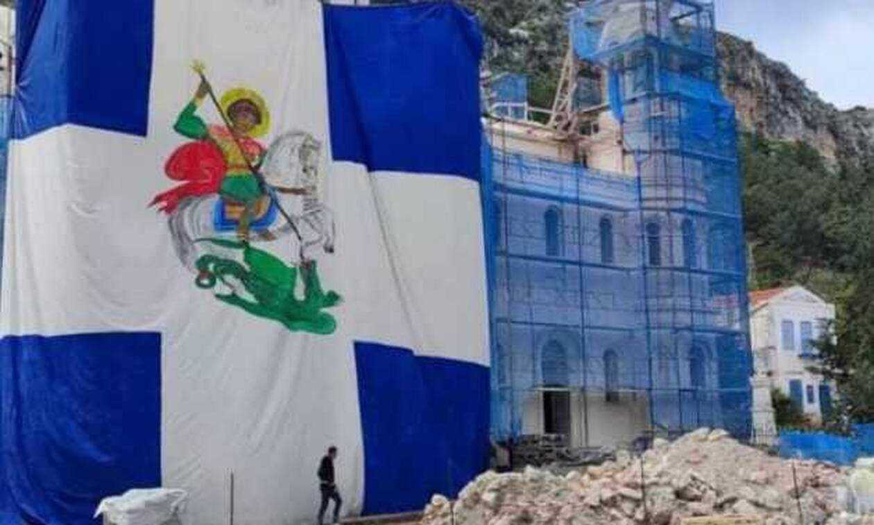 «Τιμούμε σήμερα τη μνήμη του Αγίου Γεωργίου, προστάτη του στρατού μας. Η εορτή του αποκτά ιδιαίτερο συμβολισμό με την ύψωση της σημαίας γιγαντιαίων διαστάσεων, στο ακριτικό μας Καστελλόριζο.
