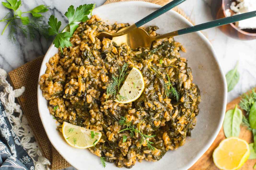 Δεν υπάρχει ένας τρόπος να φτιάξετε το κλασικό σπανακόριζο. Όλες οι εκδοχές περιλαμβάνουν ρύζι, σπανάκι ή άλλα σκούρα φυλλώδη πράσινα λαχανικά, άνηθο και λεμόνι. Χρησιμοποιήστε ένα κρεμμύδι ή μερικά πράσα στη θέση του κρεμμυδιού ή προσθέστε λίγο σκόρδο και μειώσετε τον άνηθο στο μισό. Για να απολαύσετε αυτό το γεύμα, δοκιμάστε το με θρυμματισμένη φέτα, χωριάτικη σαλάτα, ψημένο ψάρι ή τηγανητά ασκαλώνια.