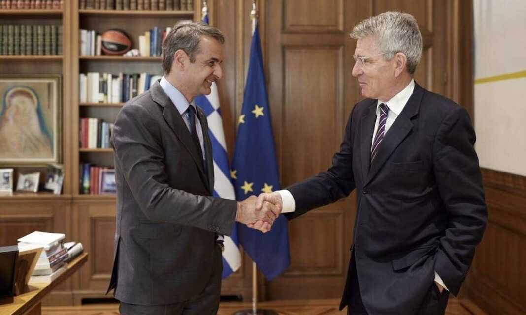 Ο πρωθυπουργός Κυριάκος Μητσοτάκης συναντήθηκε με τον απερχόμενο πρέσβη των ΗΠΑ στην Αθήνα Τζέφρι Πάιατ και ανέβασε στο λογαριασμό του στο twitter μία φωτογραφία με το εξής μήνυμα: