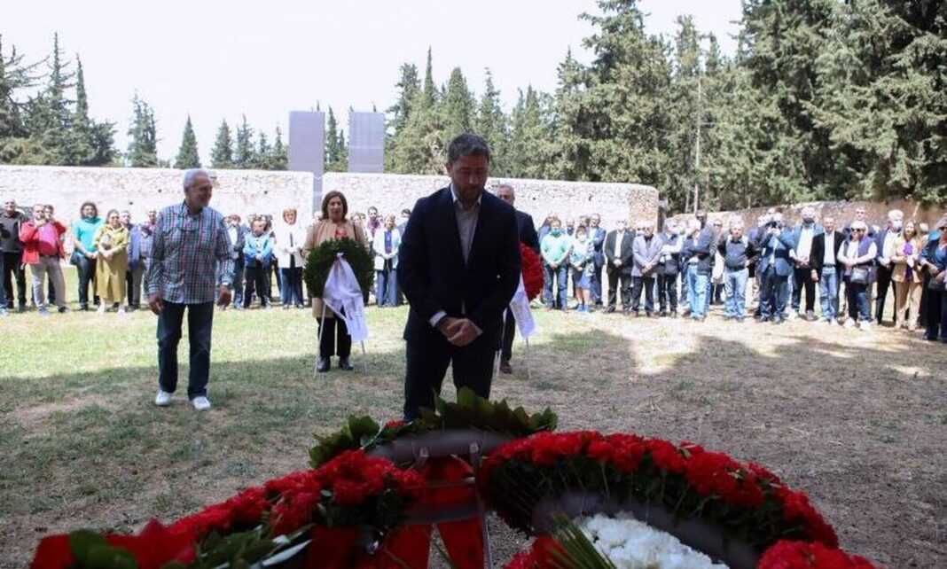 Ο πρόεδρος του ΠΑΣΟΚ-Κινήματος Αλλαγής, Νίκος Ανδρουλάκης, πλαισιωμένος από νέους κατέθεσε στεφάνι στο Μνημείο εκτελεσθέντων, τιμώντας τη μνήμη των Ελλήνων που την Πρωτομαγιά του 1944 εκτελέστηκαν από τις ναζιστικές δυνάμεις κατοχής.