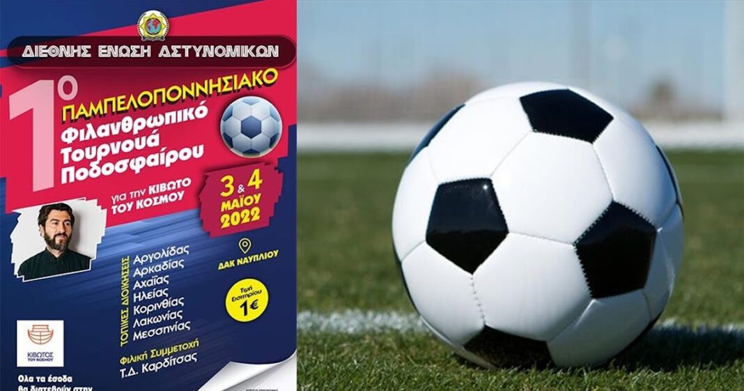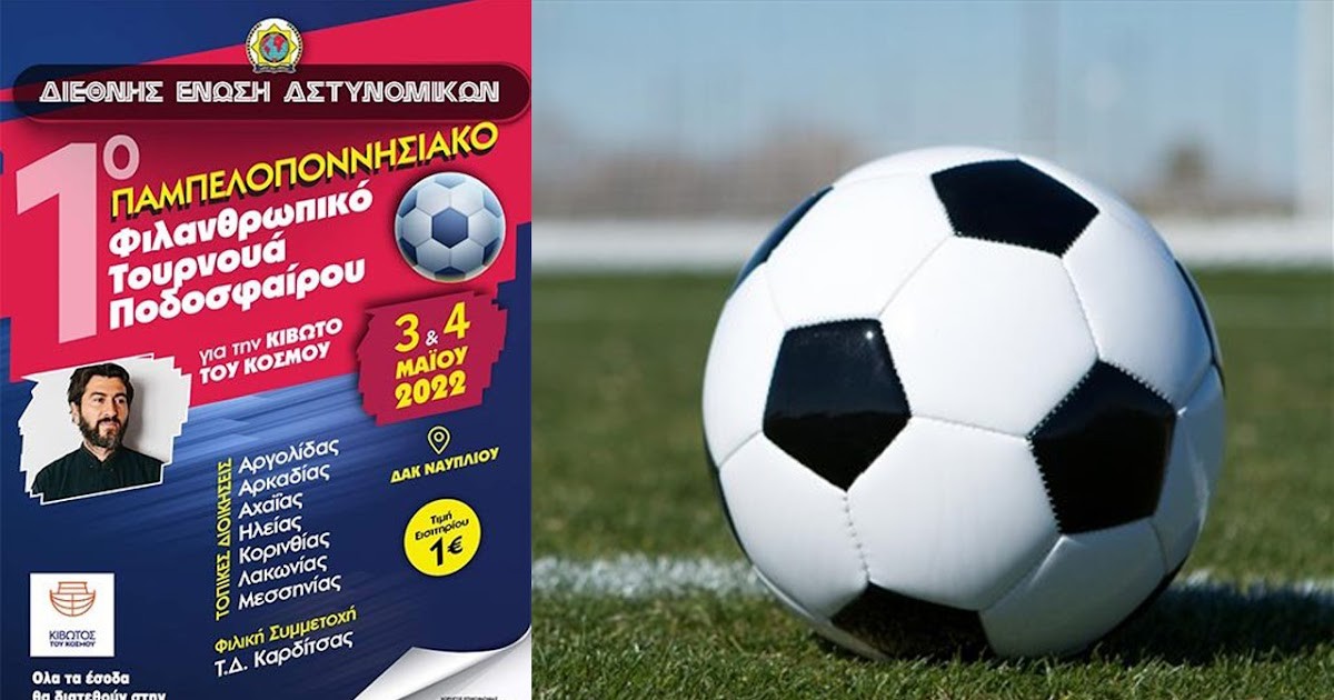 Περισσότεροι από 100 αστυνομικοί από 8 Τοπικές Διοικήσεις της Διεθνούς Ένωσης Αστυνομικών (Αργολίδας, Αχαϊας, Αρκαδίας, Ηλείας, Κορινθίας, Λακωνίας, Μεσσηνίας και Καρδίτσας) θα συμμετέχουν στο φιλανθρωπικό τουρνουά ποδοσφαίρου που θα διεξαχθεί αύριο 3 και μεθαύριο 4 Μαϊου 2022 στο Δημοτικό Στάδιο του Ναυπλίου για έναν καλό σκοπό: για να συγκεντρωθούν χρήματα για την Κιβωτό του Κόσμου. Πρόκειται για τη μη κυβερνητική οργάνωση που αποτελεί έμπνευση του Πάτερ Αντώνιου και δραστηριοποιείται – απευθύνεται στα μικρά απροστάτευτα παιδιά, τα περισσότερα από μονογονεϊκές οικογένειες, αλλά και σε πολλά χωρίς γονείς, που βιώνουν δύσκολες συνθήκες, παραμέληση ή εγκατάλειψη.