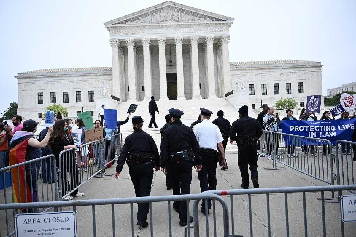 Πλήθη διαδηλωτών και από τα δύο στρατόπεδα κατέβηκαν στο κτίριο του Ανωτάτου Δικαστηρίου στην Ουάσιγκτον μετά τη διαρροή της Δευτέρας.