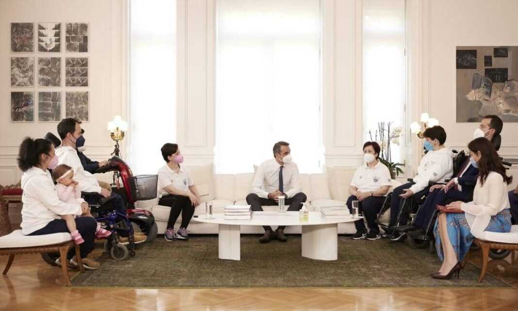 «Ένα αίτημα του αναπηρικού κινήματος, ειδικά των ανθρώπων που πάσχουν από βαριά αναπηρία, γίνεται επιτέλους πράξη», σημείωσε ο Πρωθυπουργός Κυριάκος Μητσοτάκης για το πιλοτικό πρόγραμμα «Προσωπικός Βοηθός για Άτομα με Αναπηρία», στη συνάντηση που είχε το μεσημέρι στο Μέγαρο Μαξίμου με τον Ευρωβουλευτή Στέλιο Κυμπουρόπουλο, τους χρυσούς Παραολυμπιονίκες στο μπότσια Γρηγόρη Πολυχρονίδη και Άννα Ντέντα και τον υπεύθυνο του Πολιτιστικού Κέντρου του Δήμου Περιστερίου και Δημοτικό Σύμβουλο Μπάμπη Δούναβη.