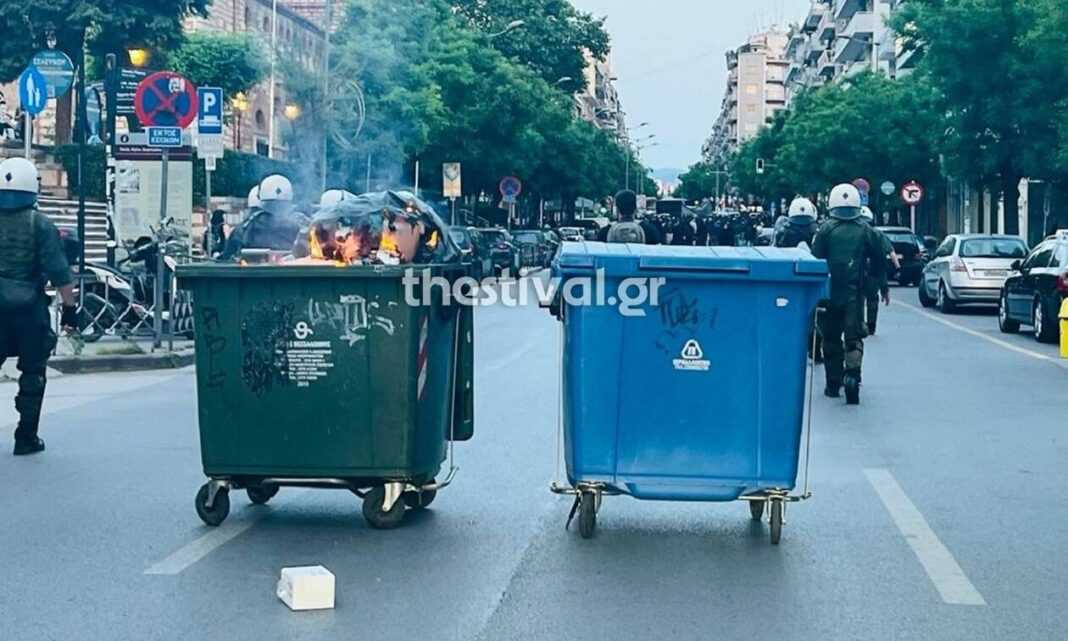 Στη συνέχεια έβαλαν φωτιά σε τρεις κάδους, στη συμβολή των οδών Αγίου Δημητρίου και Πλάτωνος και στην οδό Ιασωνίδου. Στην πορεία ακούστηκαν συνθήματα κατά της παρουσίας της αστυνομίας στα πανεπιστήμια και του νόμου για τα ανώτατα εκπαιδευτικά ιδρύματα.