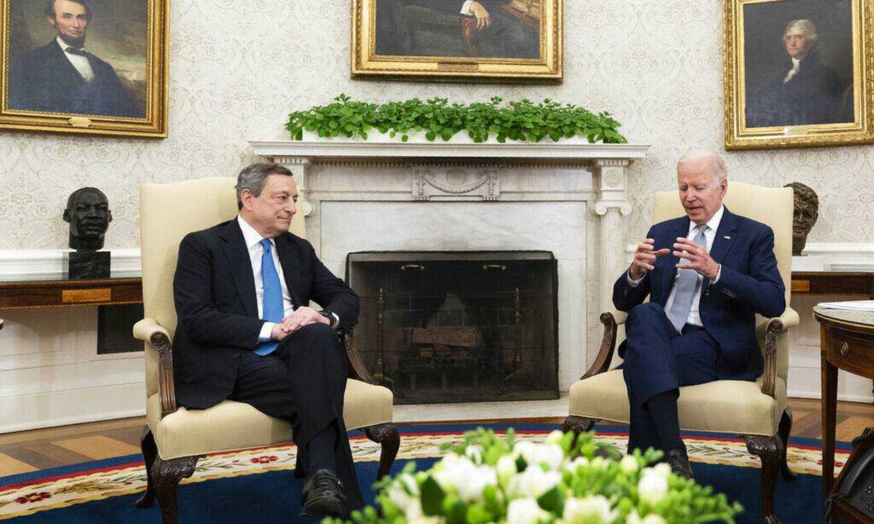 O Ιταλός πρωθυπουργός Μάριο Ντράγκι συναντήθηκε την Τρίτη με τον Αμερικανό πρόεδρο Τζο Μπάιντεν στον Λευκό Οίκο.