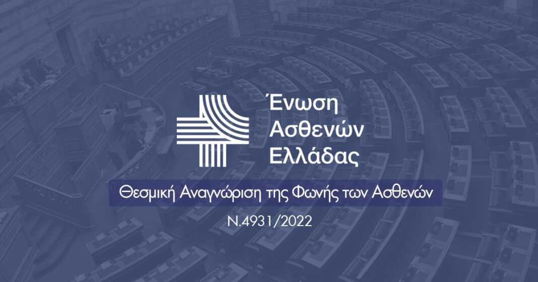 Η Ένωση Ασθενών Ελλάδας υποδέχεται με ικανοποίηση την θεσμοθέτηση της «φωνής των ασθενών», η οποία αποτελεί ιστορική μέρα για το κίνημα των ασθενών στην Ελλάδα και πρωταρχικός στόχος από την στιγμή της ίδρυσής της. Πρόκειται για το Άρθρο 60 του Νόμου 4931/2022, το οποίο ψηφίστηκε την Τετάρτη 11 Μαΐου 2022, από την Ολομέλεια της Βουλής και αποτέλεσε εισήγηση του Υπουργού Υγείας, κ. Θάνου Πλεύρη.