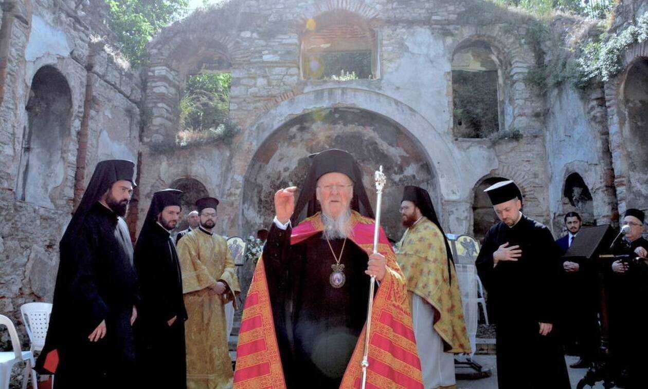 Ο Οικουμενικός Πατριάρχης Βαρθολομαίος, χοροστάτησε τη Δευτέρα στη Θεία Λειτουργία στα ερείπια του ναού της Παναγίας Παραμυθίας Φαναρίου, γνωστού ως «Βλαχ Σαράι».