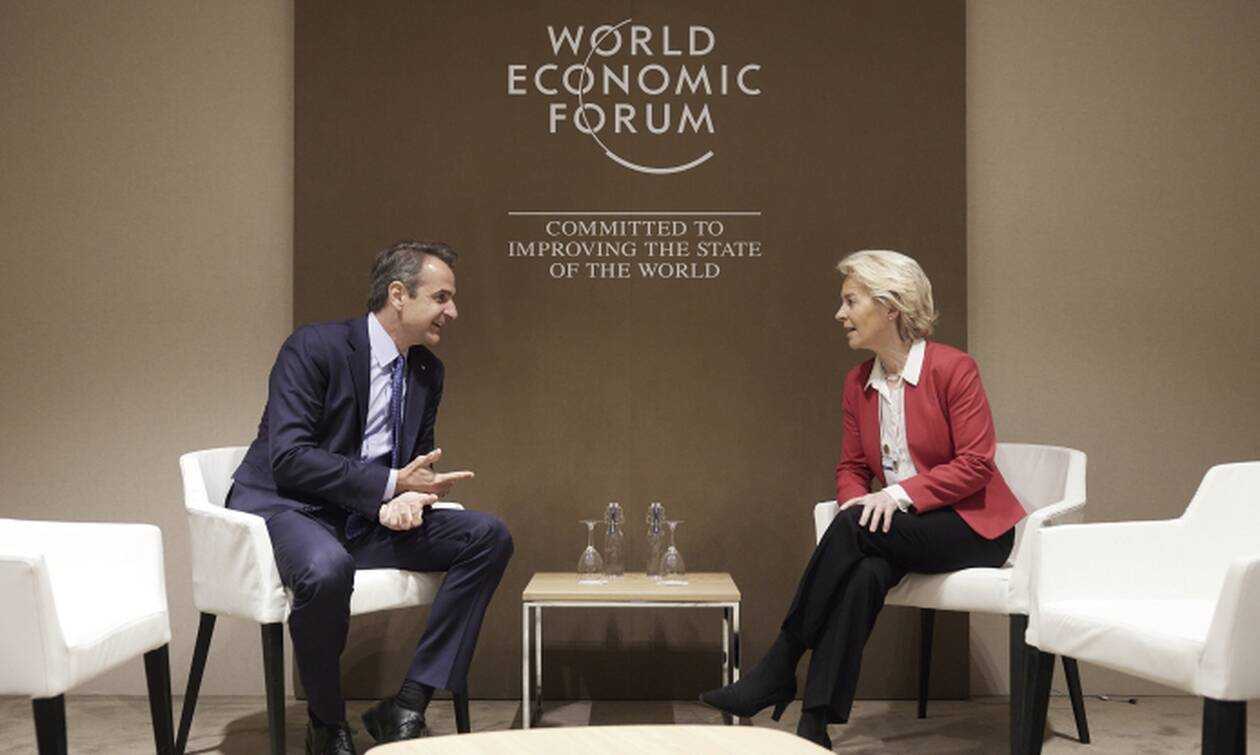 Ο Πρωθυπουργός Κυριάκος Μητσοτάκης συναντήθηκε το απόγευμα της Τρίτης (24/5) στο Νταβός με την Πρόεδρο της Ευρωπαϊκής Επιτροπής, Ούρσουλα φον ντερ Λάιεν.