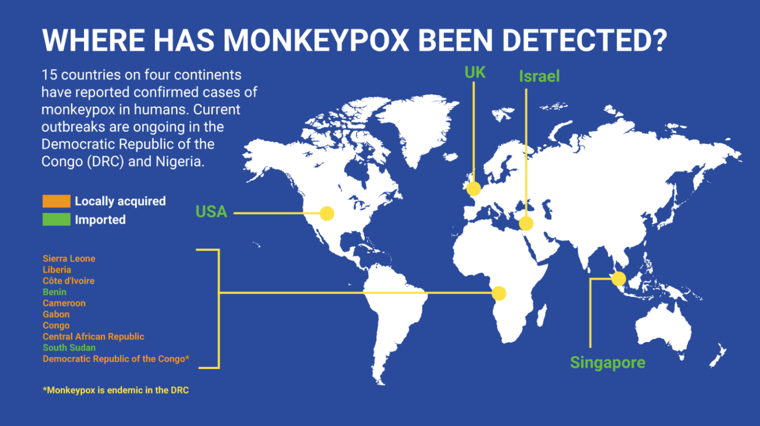 Μέχρι στιγμής, οι λοιμώξεις έχουν καταγραφεί από τον Παγκόσμιο Οργανισμό Υγείας Ενώ ο οργανισμός των Ηνωμένων Εθνών σημείωσε ότι το ξέσπασμα είναι ένα «άκρως ασυνήθιστο γεγονός», αξιωματούχοι περιέγραψαν τις λοιμώξεις ως «δυνάμενες να περιοριστούν» και προειδοποίησαν κατά των στιγματιστικών ομάδων. Παραδοσιακά, ο ιός της ευλογιάς των πιθήκων μεταδίδεται με το άγγιγμα ή το δάγκωμα από μολυσμένα άγρια ζώα στη δυτική και κεντρική Αφρική.