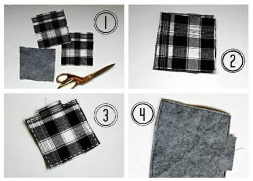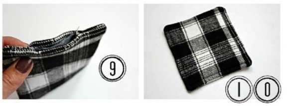 Πώς θα τα φτιάξετε Βάλτε τα υφασμάτινα τετράγωνα το ένα πάνω στο άλλο δημιουργώντας ένα «σάντουιτς» τοποθετώντας πρώτη την τσόχα. Στερεώστε τα με καρφίτσες και στην συνέχεια ράψτε τα περιμετρικά. Αφήστε ένα μικρό κενό σε κάποια από τις πλευρές έτσι ώστε να μπορείτε να αναποδογυρίσετε το σουβέρ μέσα-έξω.