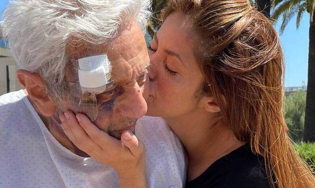 Η Shakira συνόδευσε την ανάρτησή της με μια φωτογραφία όπου φιλά τρυφερά τον γεμάτο μελανιές μπαμπά της.