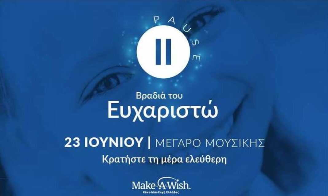 Μετά από 2,5 περίπου χρόνια, την Πέμπτη 23 Ιουνίου στο Μέγαρο Μουσικής, το Make–A–Wish (Κάνε-Μια-Ευχή Ελλάδος) επιστρέφει με μια ιδιαίτερη βραδιά, τη Βραδιά του Ευχαριστώ.
