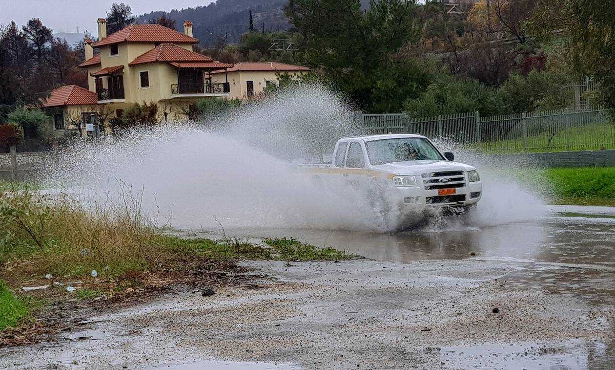 Ορμητικός χείμαρρος κόβει την κυκλοφορία σε δρόμο στην Ξάνθη