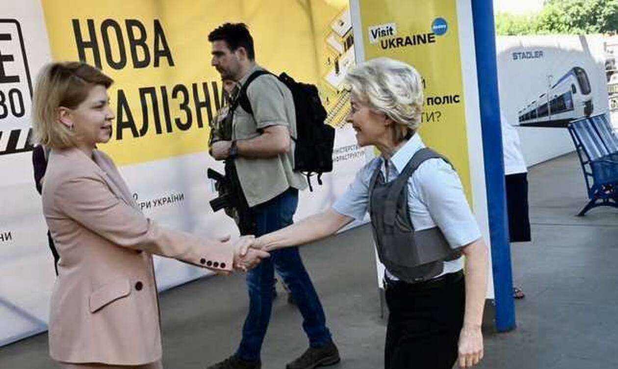 Σύμφωνα με το Bloomberg, η Ούρσουλα φον ντερ Λάιεν ταξίδεψε στην πρωτεύουσα της Ουκρανίας για να συναντηθεί με τον πρόεδρο Ζελένσκι και να συζητήσουν το αίτημα της χώρας για ένταξη ΕΕ, καθώς και με ποιον τρόπο θα χρηματοδοτηθεί η ανοικοδόμηση του κατεστραμμένου από τον πόλεμο κράτους.