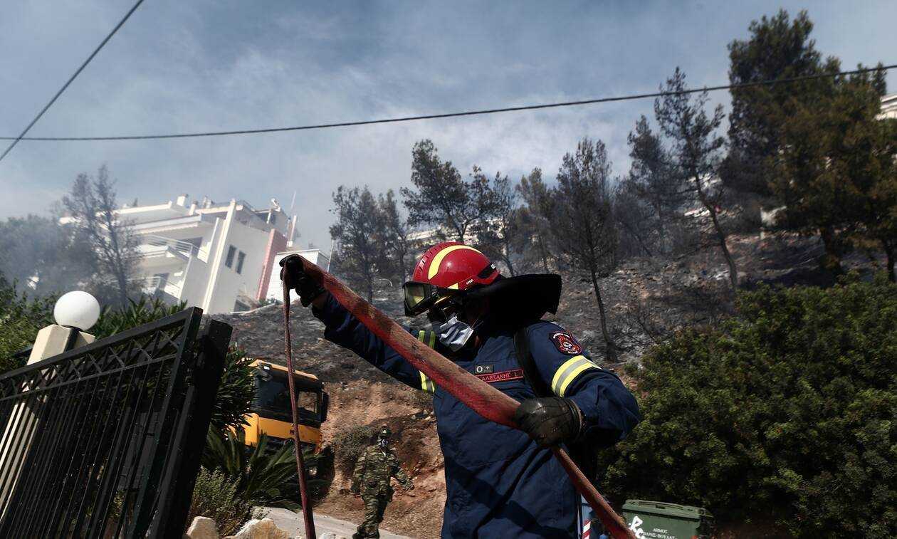 Η φωτιά καίει πουρνάρια κοντά στην οδό Μεγαρίδος.