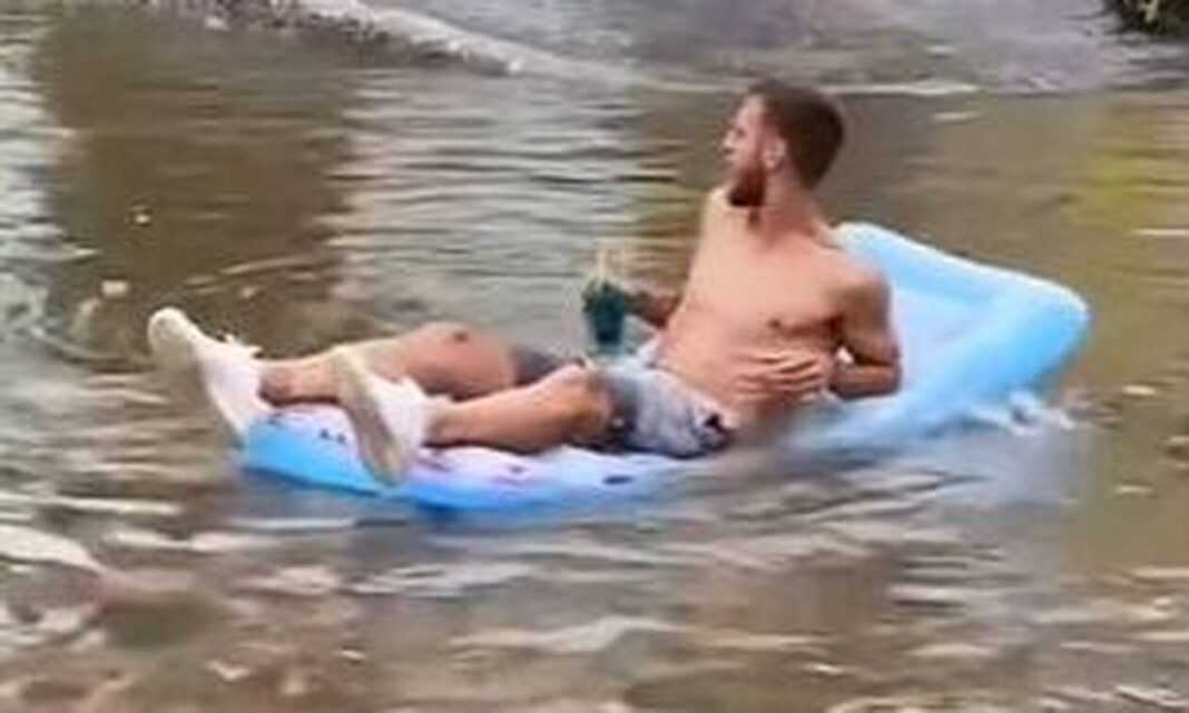Νεαρός στην Κατερίνη, το περασμένο Σαββατοκύριακο, όταν η θάλασσα και ο δρόμος έγιναν ένα λόγω της ισχυρής βροχής που έπεσε στην περιοχή, πήρε το φουσκωτό στρώμα θαλάσσης και μαζί με ένα ποτήρι κοκτέιλ «άραξε» μέσα στον δρόμο, επιπλέοντας…
