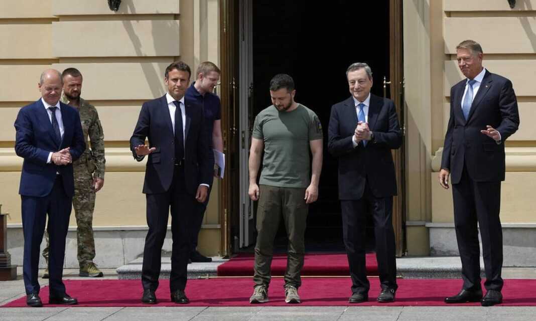 Ο Καγκελάριος της Γερμανίας ο Γάλλος πρόεδρος και ο Ιταλός πρωθυπουργός, επισκέφθηκαν το μισοκατεστραμμένο προάστιο του Κιέβου και είδαν από κοντά ότι έχει απομείνει από τους ρωσικούς βομβαρδισμούς.