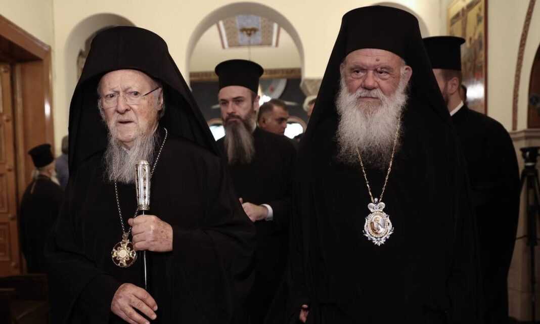 Τον Οικουμενικό Πατριάρχη Βαρθολομαίο υποδέχθηκε το απόγευμα της Πέμπτης στην Ιερά Αρχιεπισκοπή Αθηνών, ο Αρχιεπίσκοπος Αθηνών και πάσης Ελλάδος Ιερώνυμος.