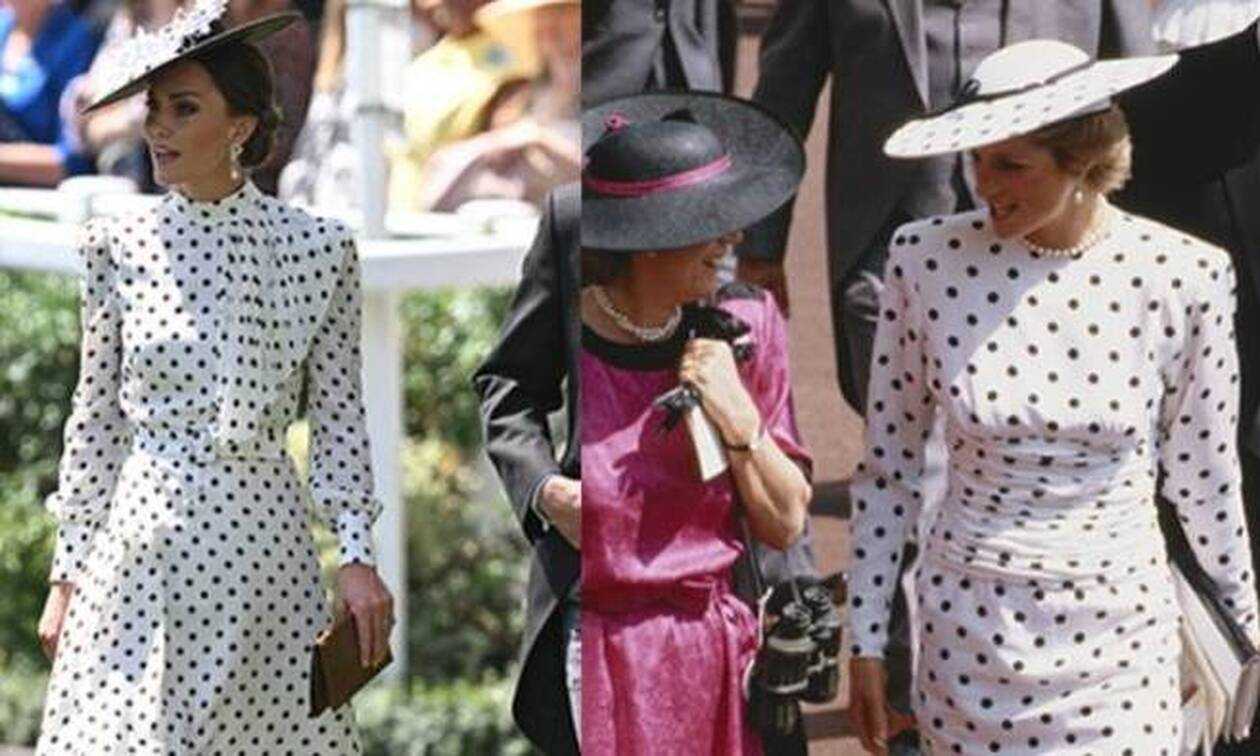 Η Κέιτ Μίντλετον εντυπωσίασε για ακόμα μία φορά με την κομψή της εμφάνιση που θύμιζε την πριγκίπισσα Νταϊάνα, αφού η σύζυγος του πρίγκιπα Ουίλιαμ, επέλεξε να φορέσει σχεδόν το ίδιο σύνολο με το οποίο είχε εμφανιστεί στις ιπποδρομίες του Άσκοτ η Νταϊάνα το 1988.