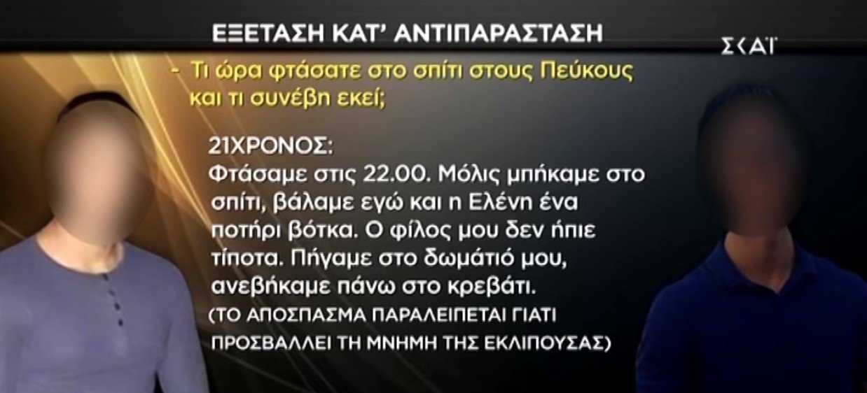 Σήμερα για πρώτη φορά ήρθαν στο φως της δημοσιότητας μέσω της εκπομπής «Μαζί σου» με την Τατιάνα Στεφανίδου στον ΣΚΑΪ, όλα όσα είπαν οι δυο κατηγορούμενοι όταν βρέθηκαν κατ’ αντιπαράθεση μπροστά στην ανακρίτρια.