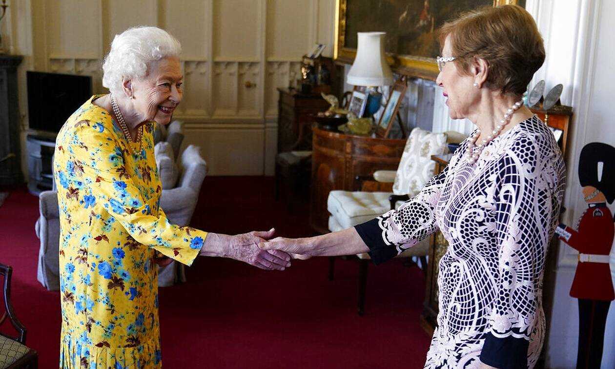 Η 96χρονη μονάρχης, στάθηκε ξανά χωρίς το μπαστούνι της και υποδέχθηκε την Αυστραλή πολιτικό Μάργκαρετ Μπίζλι. Η Ελισσάβετ φορώντας ένα κίτρινο φόρεμα διακοσμημένο με μοτίβο από μπλε λουλούδια, φωτογραφήθηκε όρθια χωρίς μπαστούνι καθώς συνάντησε τον καλεσμένο της.